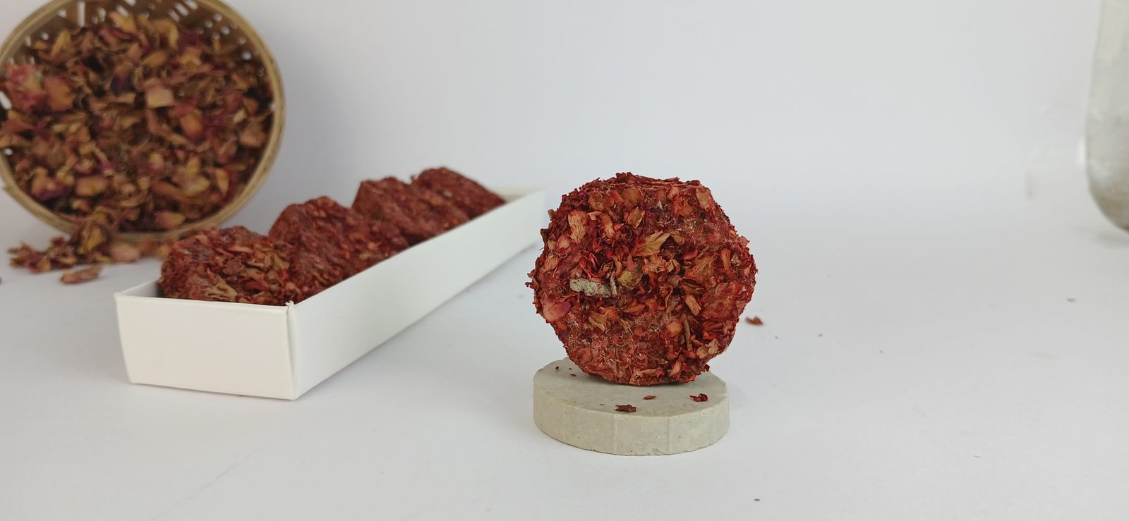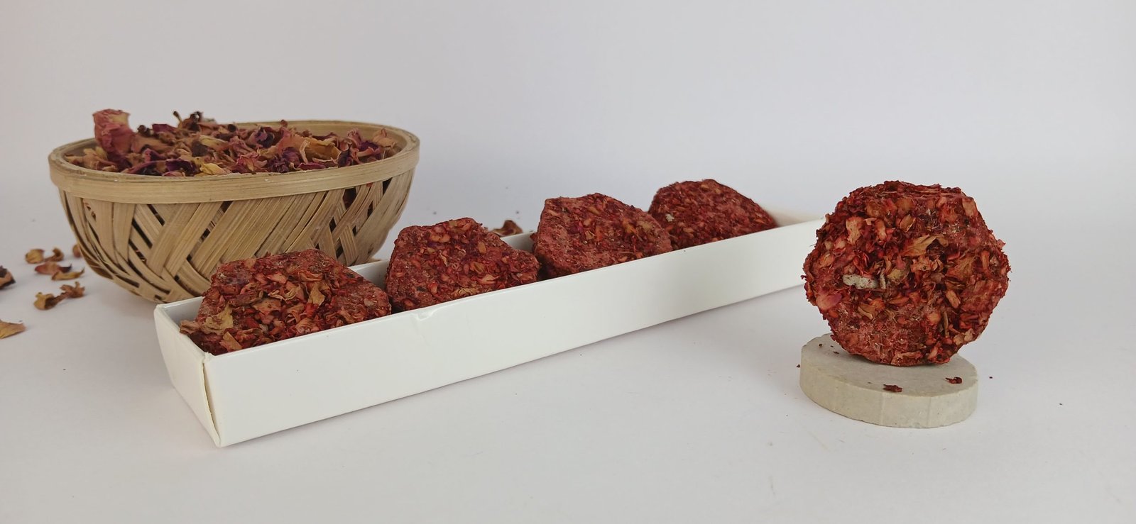 Handcrafted with natural rose petals for a soft, loving aroma