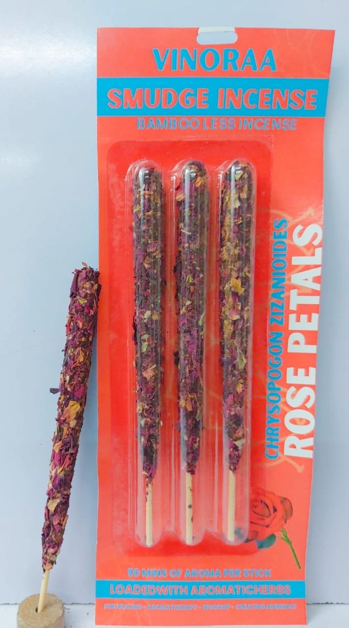 Infuse your space with the gentle, romantic essence of rose petals. These smudge incense sticks are handcrafted with dried rose petals and natural herbs, designed to create a calming, heart-opening atmosphere.